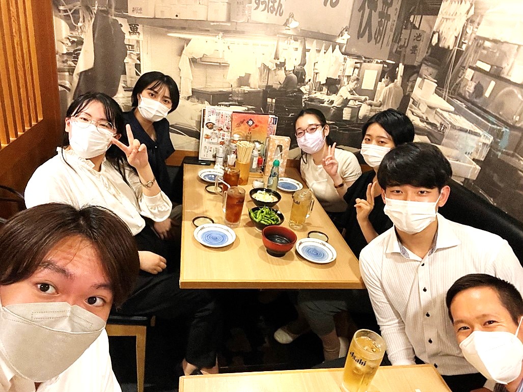 この写真は発表が終わった後の同期との打ち上げです。